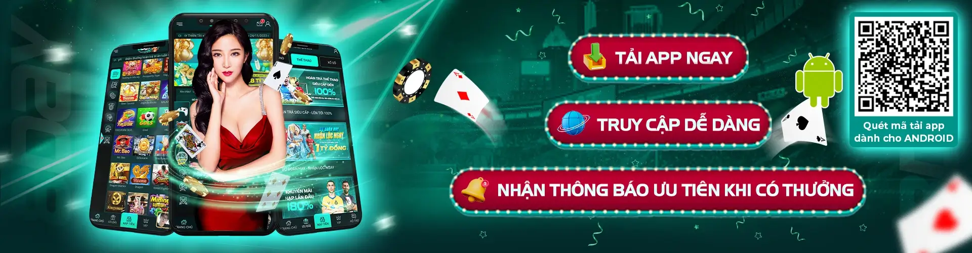 Để không bỏ lỡ những giây phút cá cược đỉnh cao tại sân chơi hấp dẫn dẫn này, người tham gia cần sử dụng đúng các đường dẫn chính thống. Việc này đảm bảo truy cập an toàn, mượt mà và không bị gián đoạn. Hiện tại, nhà cái cung cấp link truy cập và link tải ứng dụng chính thống như sau: